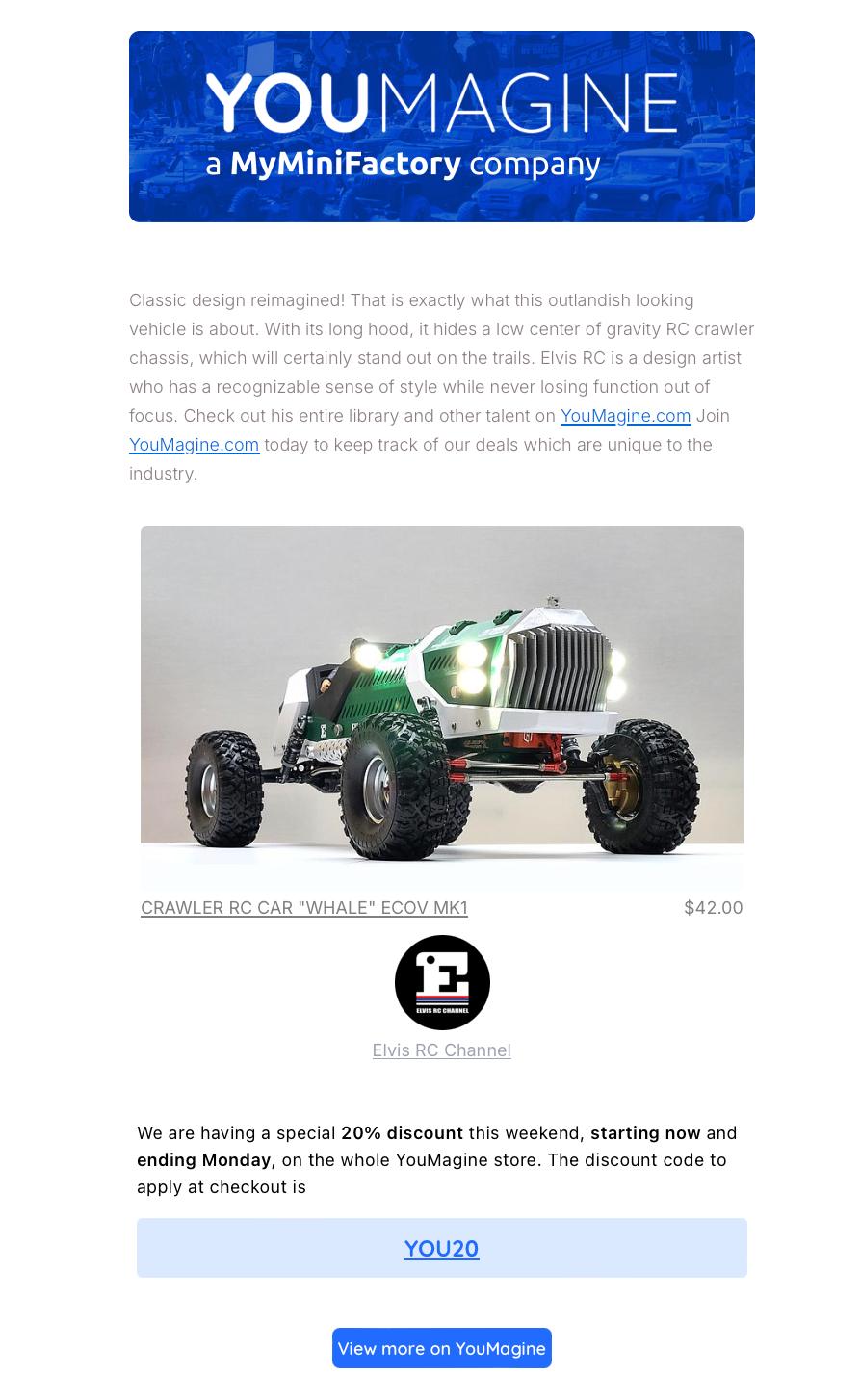 We regularly highlight favourite 3D files on our homepage, in our selections, on social media, or in our monthly newsletter. The more exclusive your designs are (only available on YouMagine), the more likely they are to be featured.